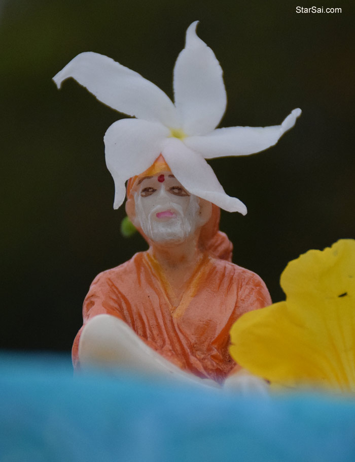 Sai Baba and his little white flower