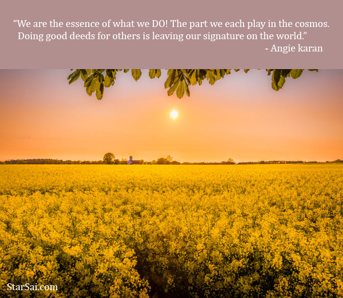 I got a message from Sai on Saturday morning. The first one was Purity of deeds. Most of us are cluttured by our desires and the environment we live in. Our friends and people we are associated with also influence our thought process there by influencing our action.